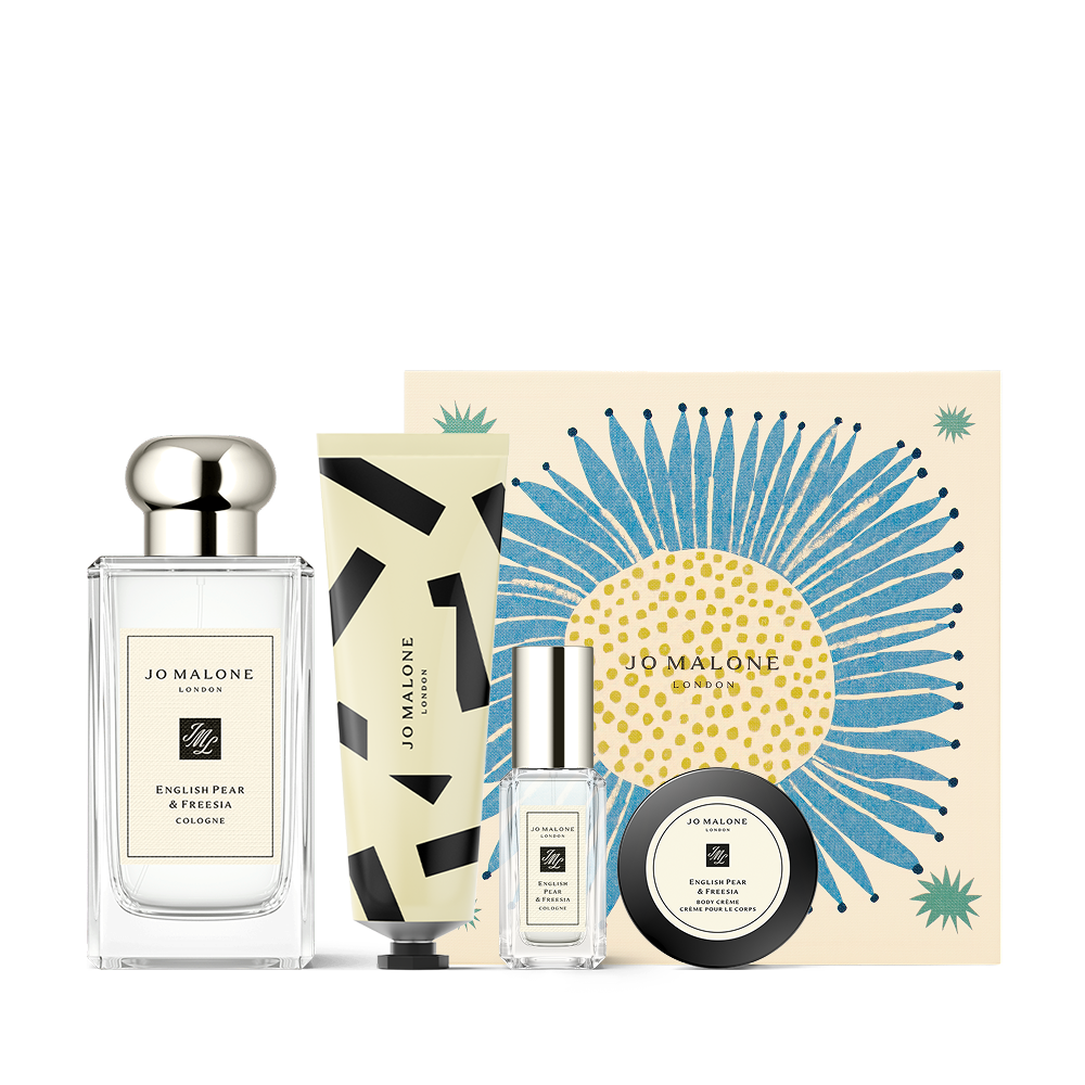 套裝包括:英國梨與小蒼蘭古龍水 100ml,英國梨與甜豌豆花護手霜 30ml,英國梨與小蒼蘭古龍水 9ml,英國梨與小蒼蘭潤膚乳霜 15ml.英國梨與小蒼蘭古龍水:彷彿集結春天的氣息。 猶如新鮮採摘的清新梨子香氣,搭配白色小蒼蘭所綻放的花香,佐以琥珀、廣藿香與木質香調的柔和芳香。 擁有奢華的金色光澤。英國梨與甜豌豆花護手霜:清甜英國梨果香被甜豌豆花的優雅粉嫩花香溫柔包覆其中,注入柔美粉色白麝香基調,縈繞溫暖愉悅的舒心氣息。